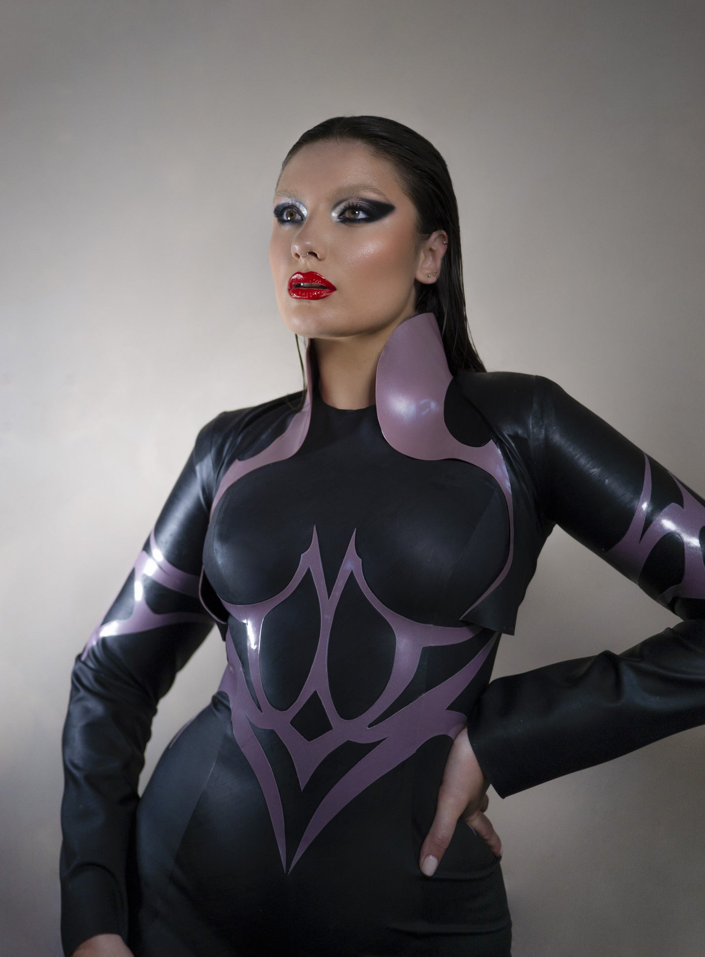 Custom outfit Russian artist Karina Akopyan Outfit inspired by Luybov Popova Contructivism design. Picture/concept/model: Karina