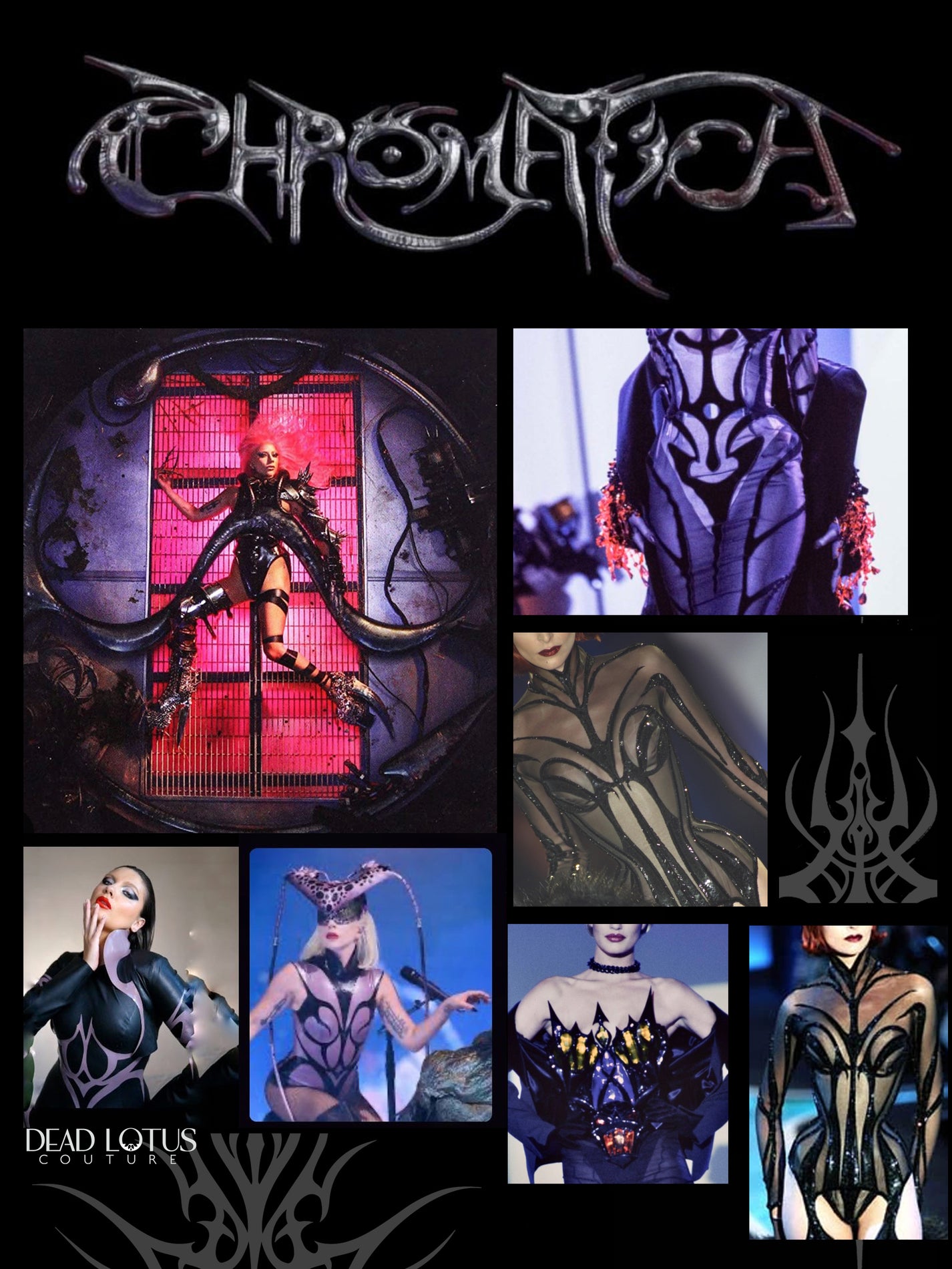 Chromatica x Mugler omage Outfits for Lady Gaga Chromatica Tour ©2022 - (check Mantis leotard, CHRYSALIS Dress, CARAPACE Bolero Jacket)