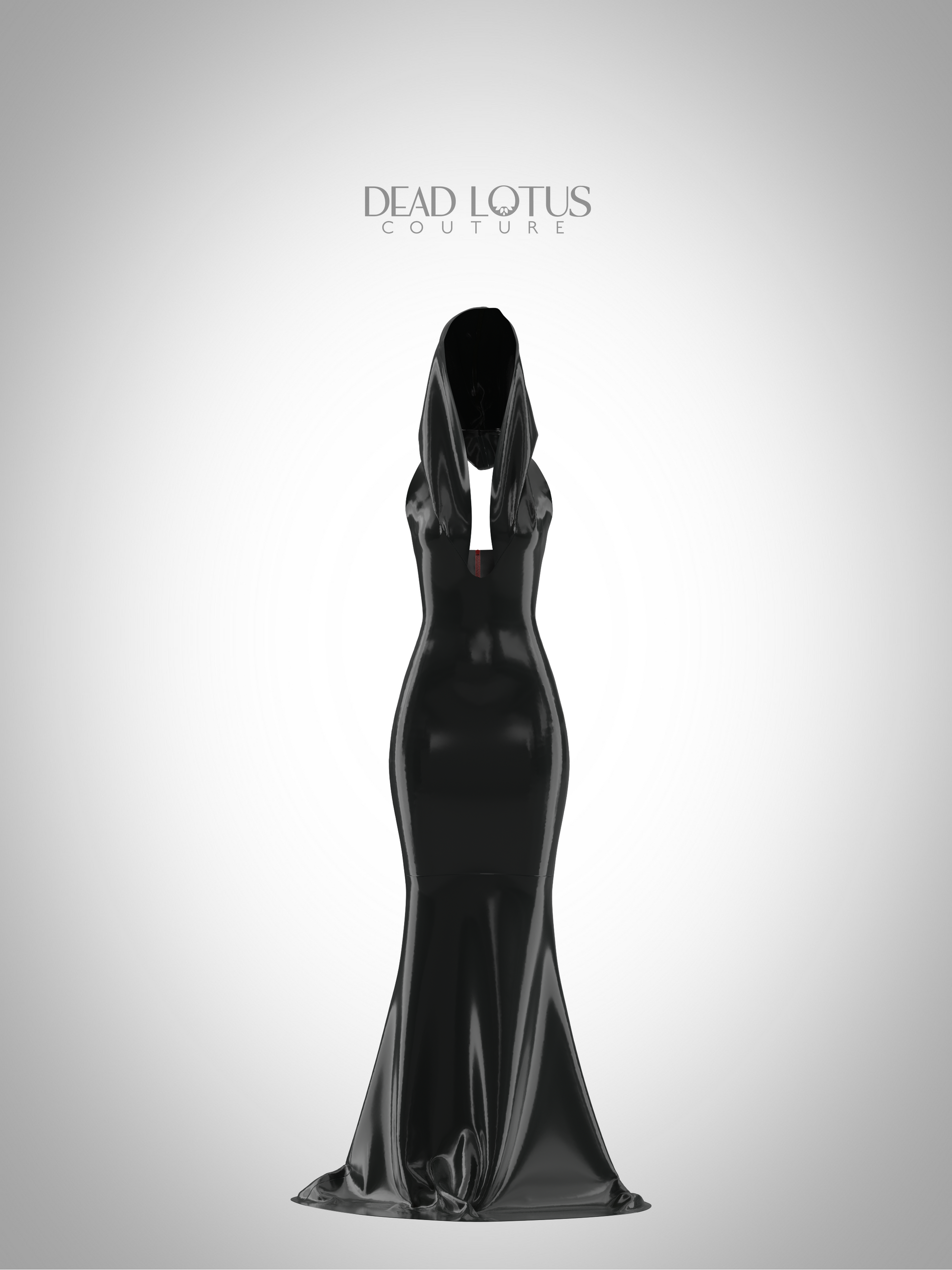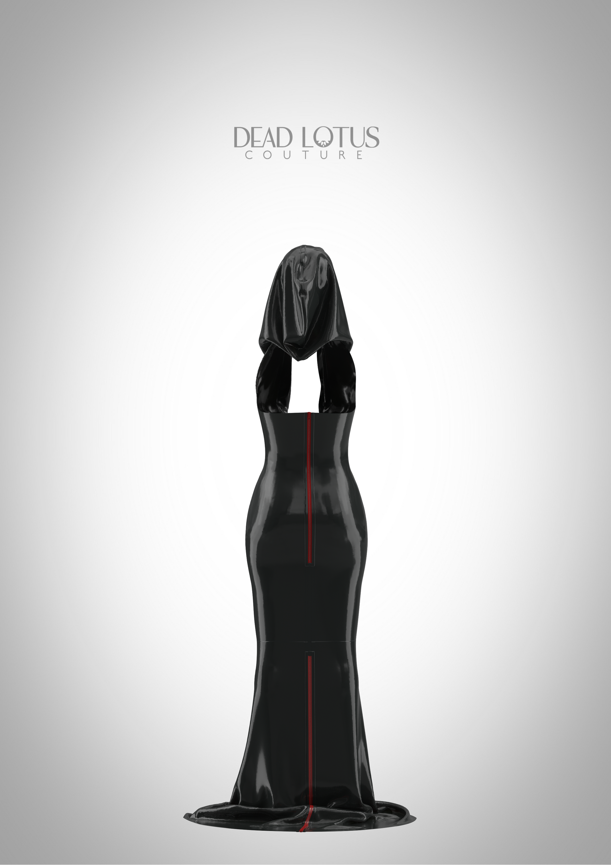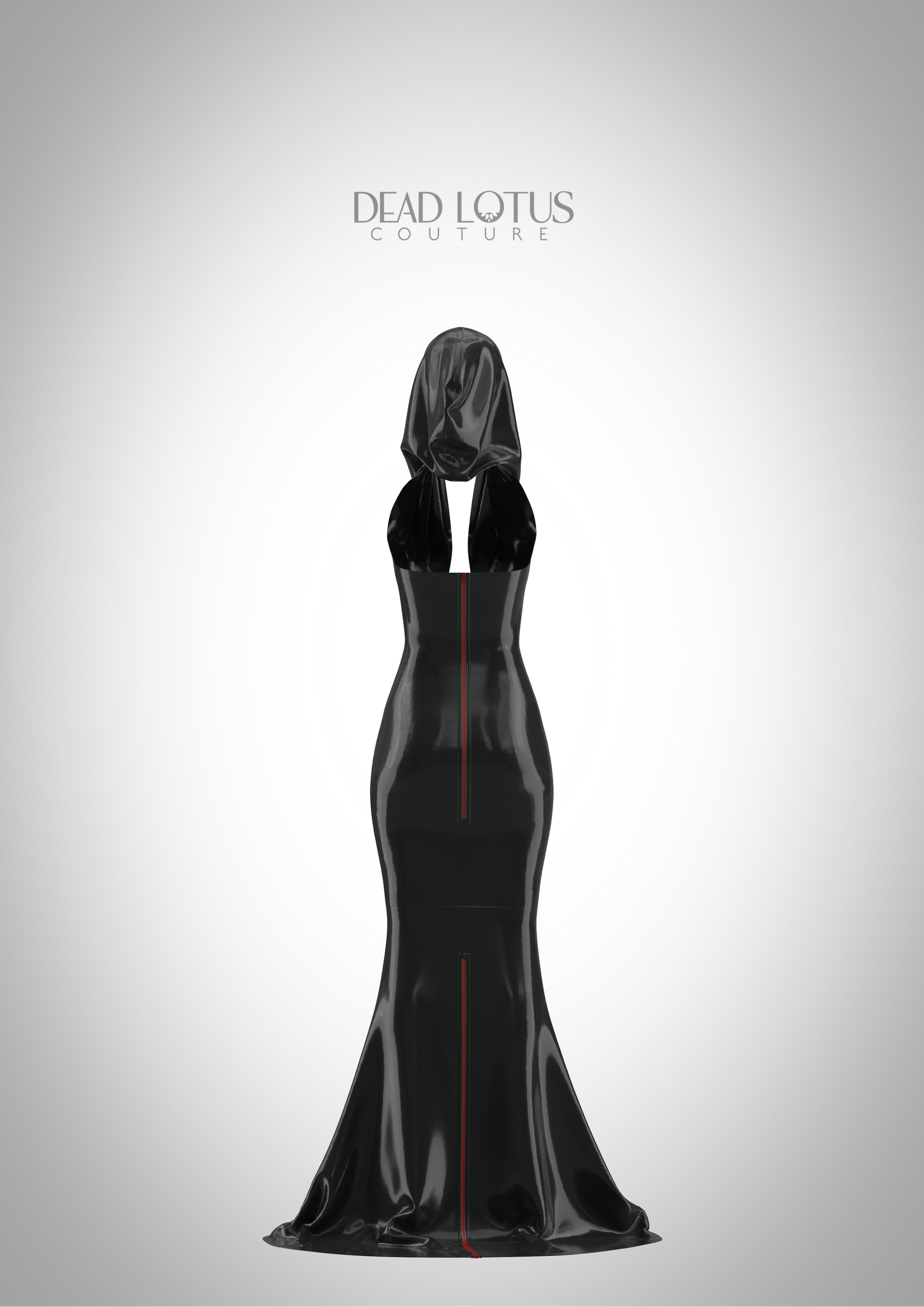 CELAENO dress is a long latex dress that has an elegant siren skirt, which gently emphasises the female curves at their very best.