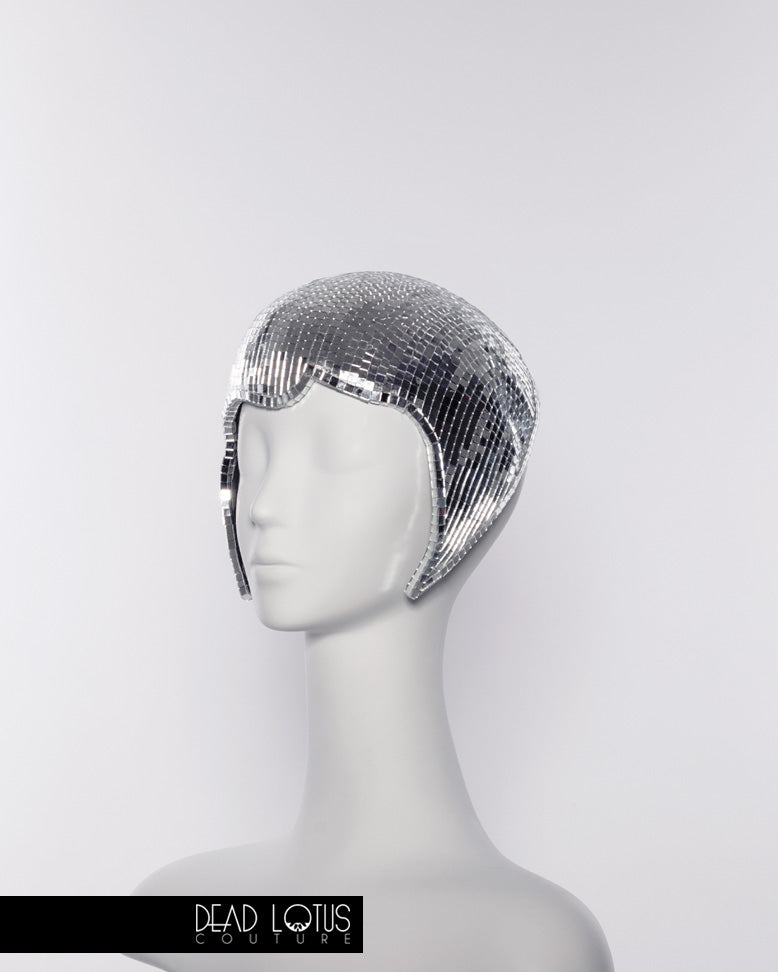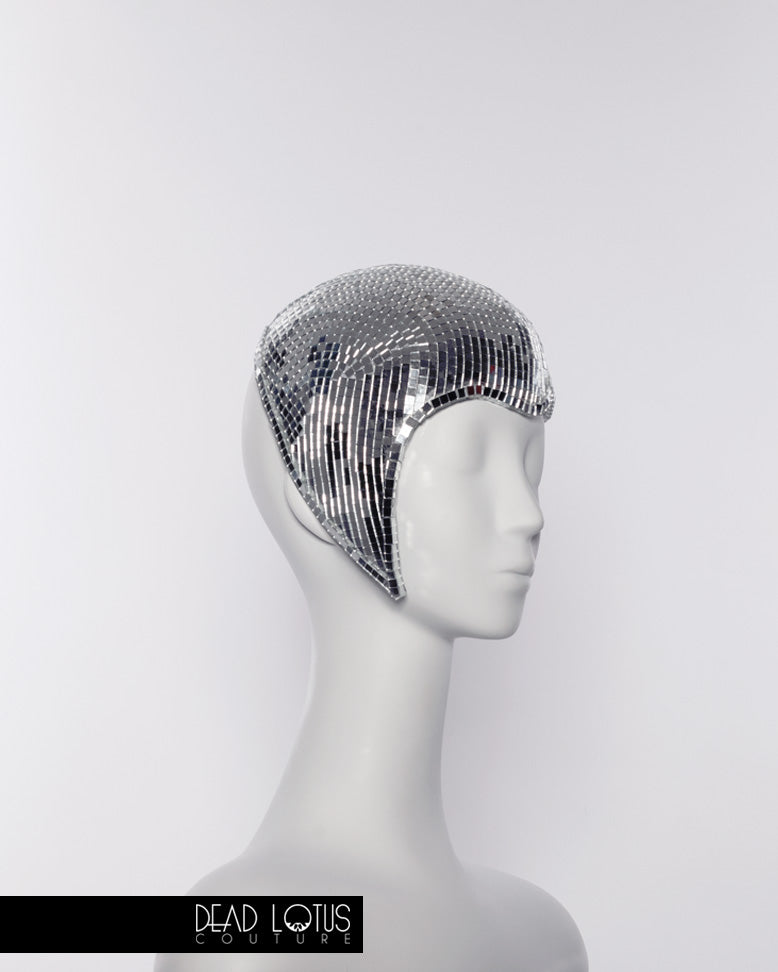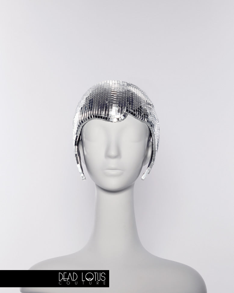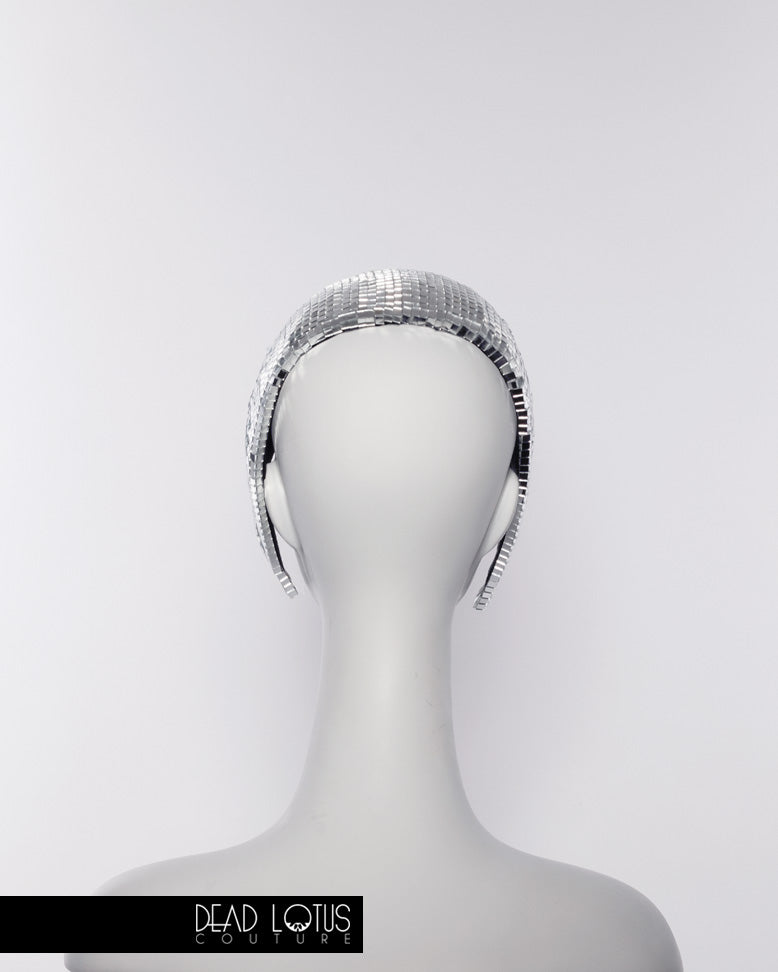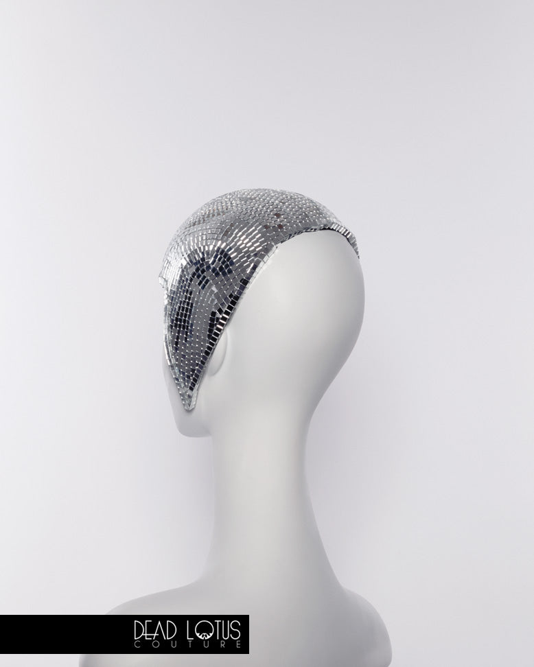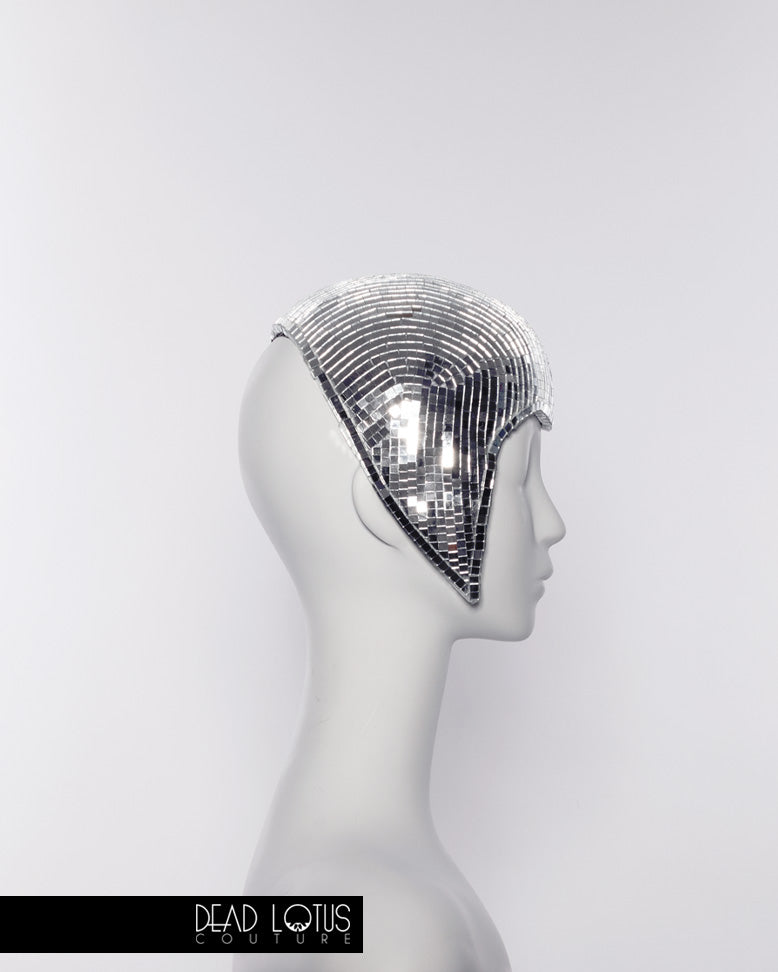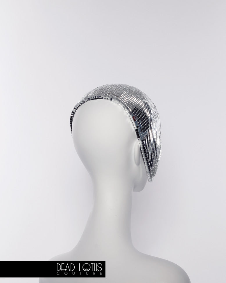 Anything but silent, Dead Lotus Couture's UNSAID Headpiece is a handcrafted work of wearable art. Elegantly framing your face, UNSAID is hand finished with thousands of real glass mirror tiles, reflecting you and everything around you. The graceful curves of this daring headgear are to sure to communicate everything that would otherwise go unsaid.