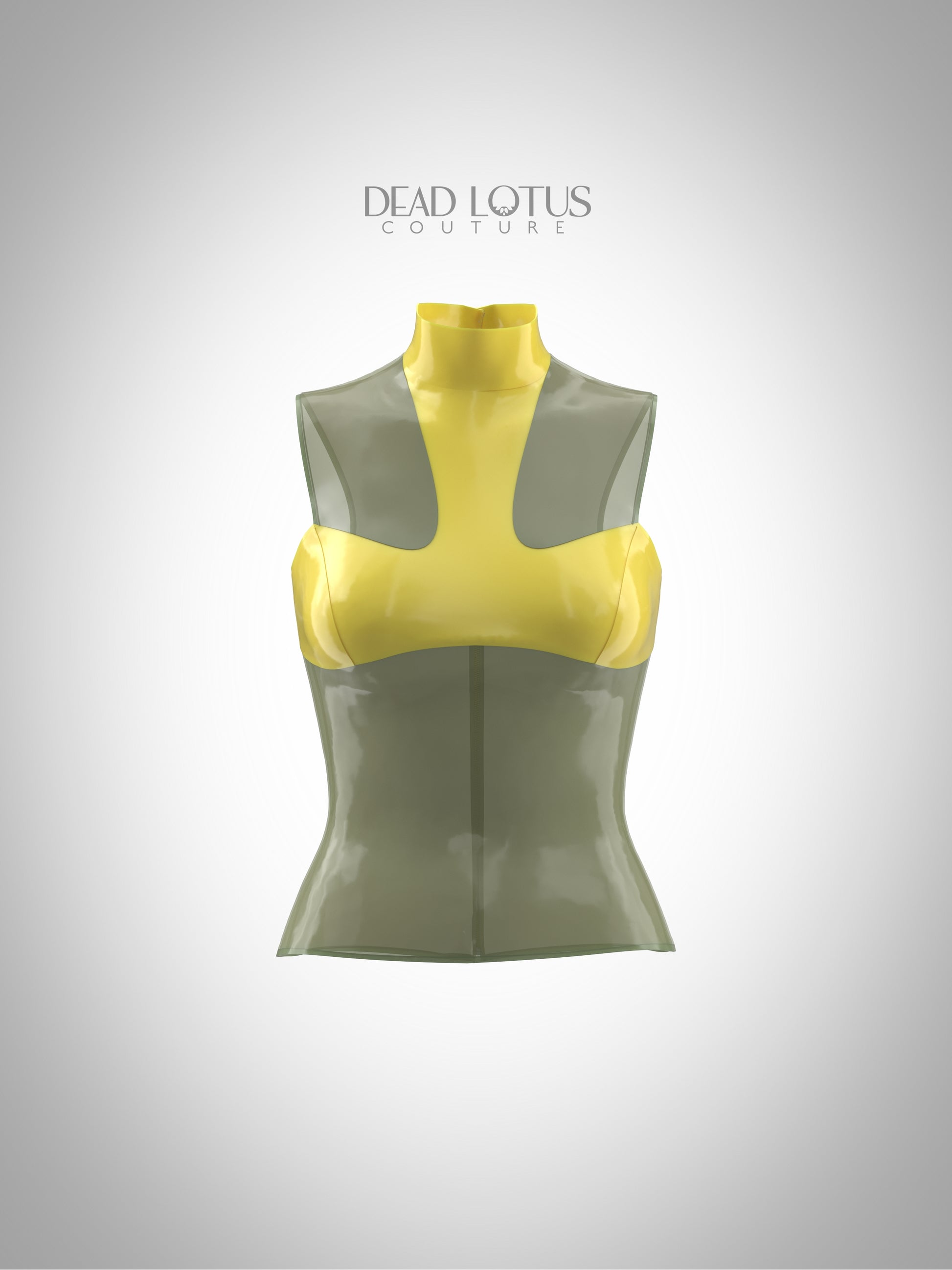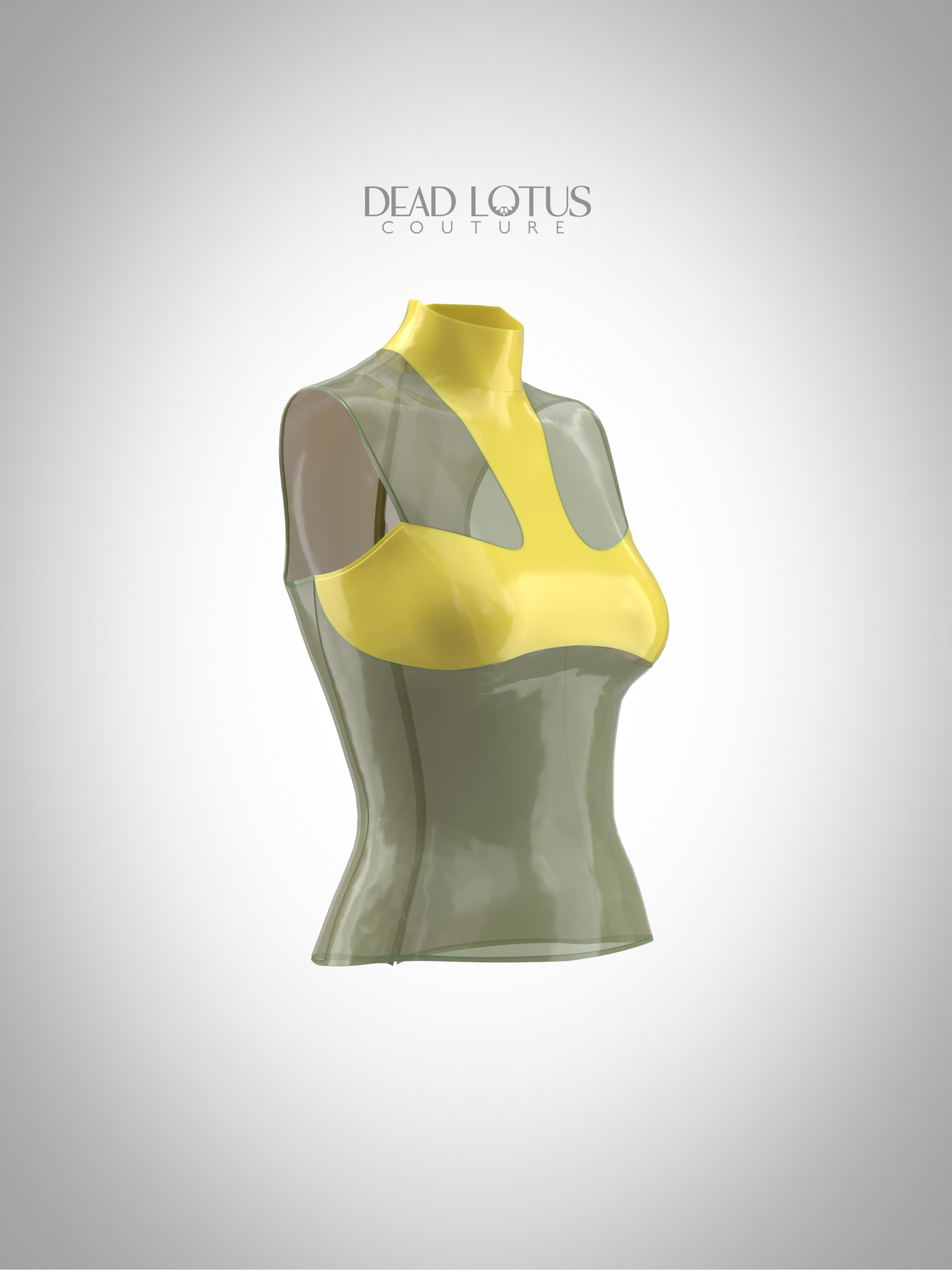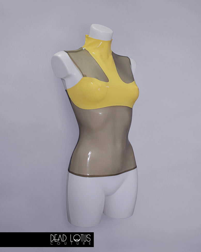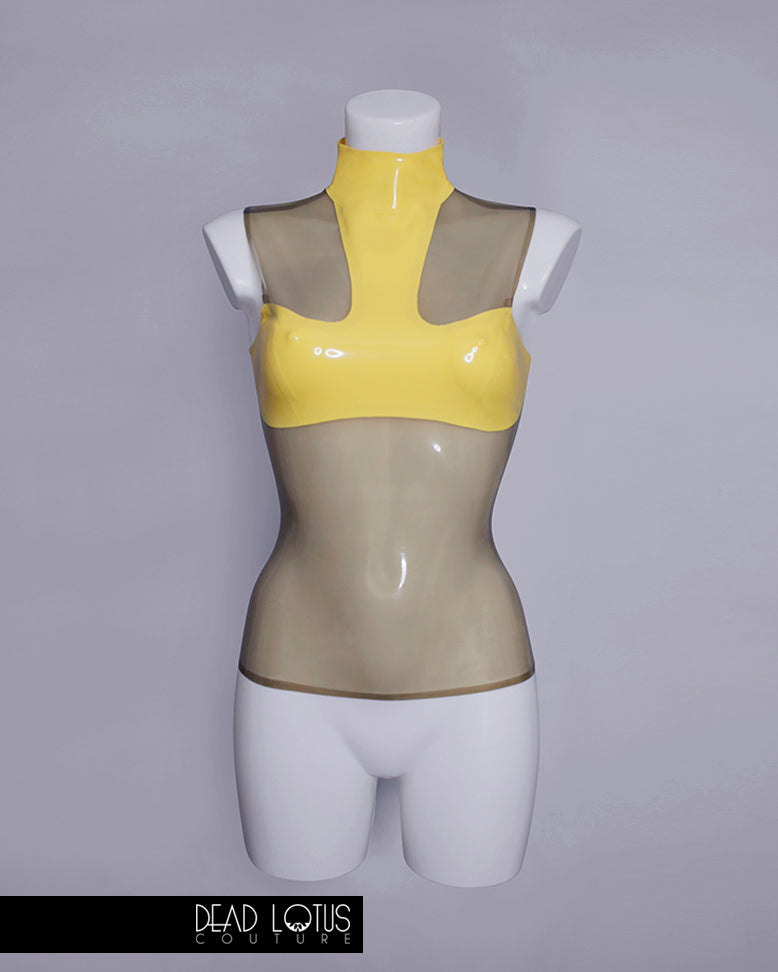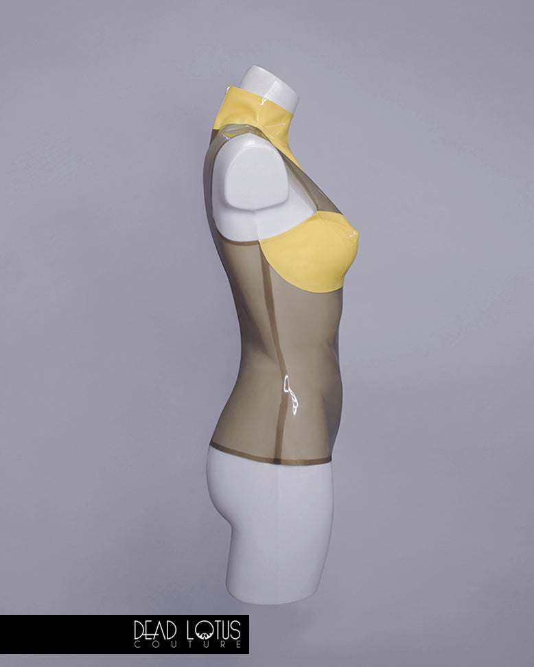 EXPLOY Top has a uniquely groovy look and feel. Sleeveless and with a high neck, it can be a swinging elegant addition to a pencil skirt, or with a pair of leggings it might be just the garment for an adventure that’s totally shagadelic, baby. The contrasting chest panels can be clear or solid to create a completely different mojo.