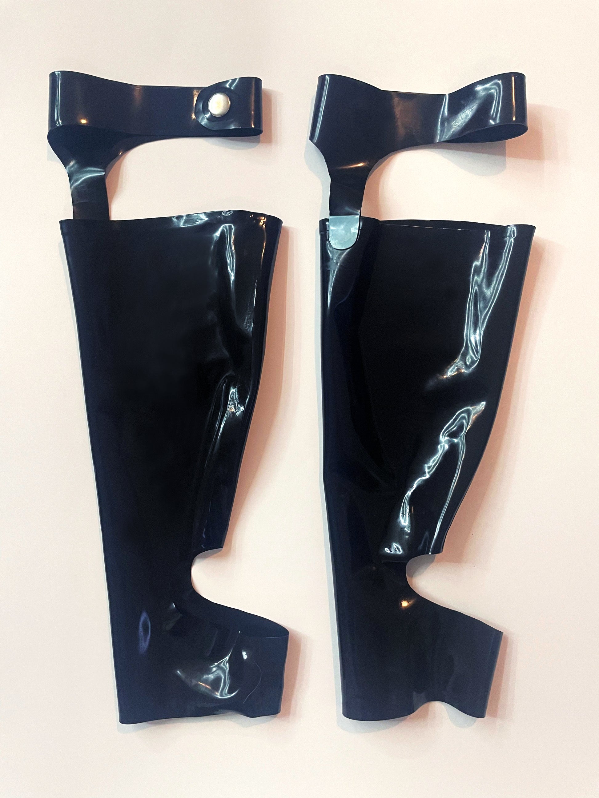 Introducing the ultimate statement piece for your sock drawer: our 1930s-inspired latex socks with a metal popper for easy wear. These androgynous socks exude sophistication and style, with a sleek finish that adds a touch of glamour to any outfit.