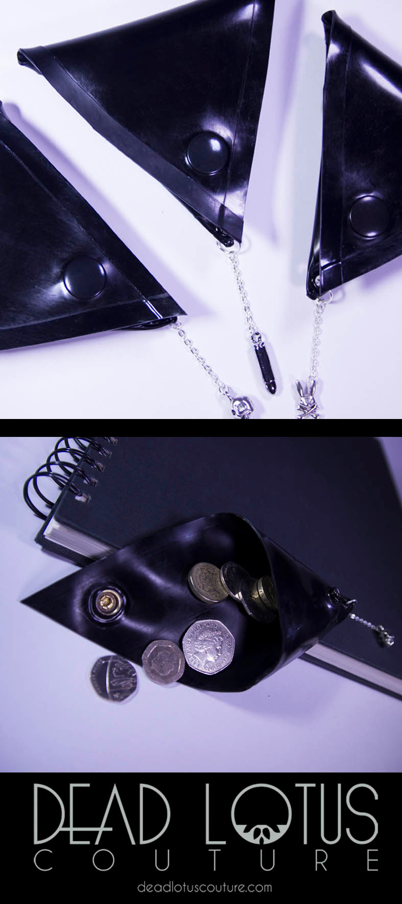 Elegant, simple and eye-catching PRYSMA Coin Purse in latex is the perfect accessory for every organized person with a little wicked streak in their pocket or handbag.