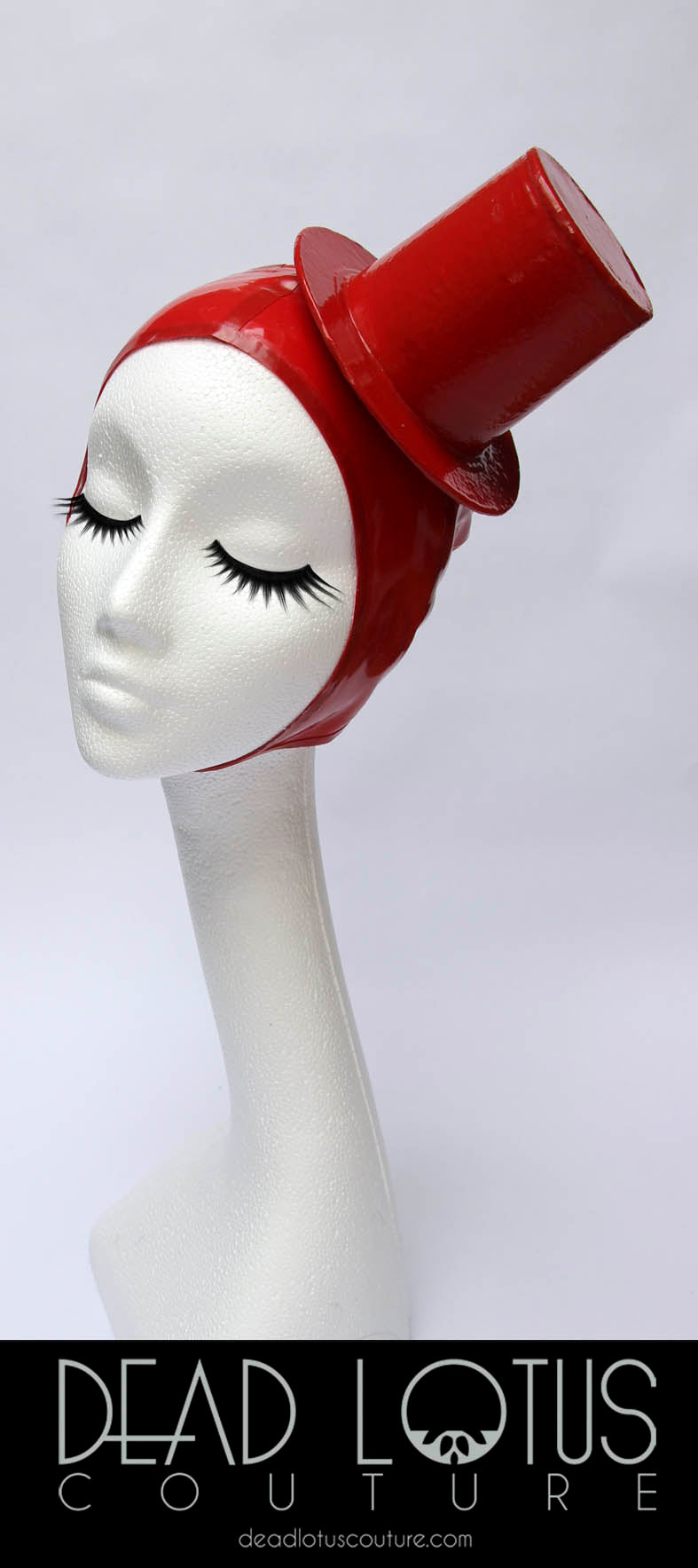 An elegant and cute mini top hat is set on a comfortable latex hood, which gently caresses your head shape.