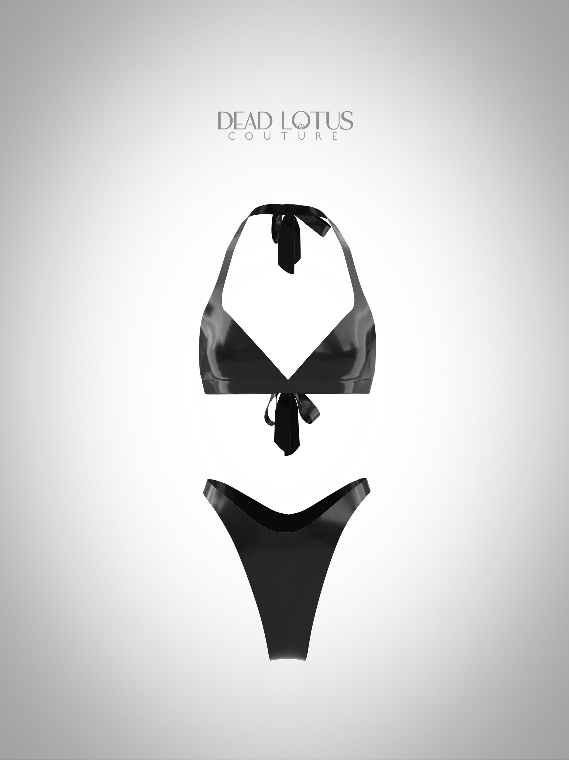 The rich, glossy latex of TRIANGOLA is shaped to enhance and support your body shape, no matter where or how you wear it.